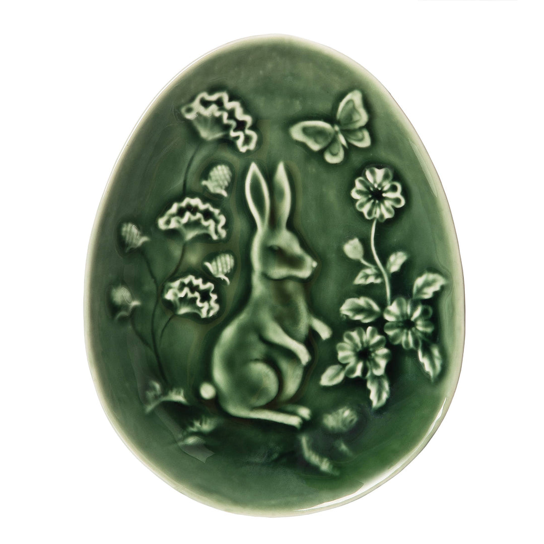 Rabbit Toile Decorative Plate in Green