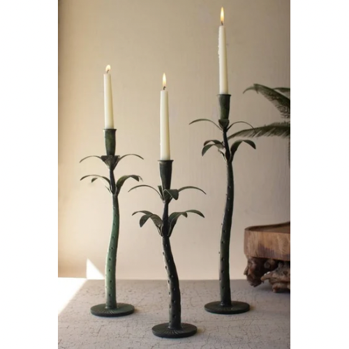 Iron Verdisgris Palm Taper Candle Holders, Assorted sizes