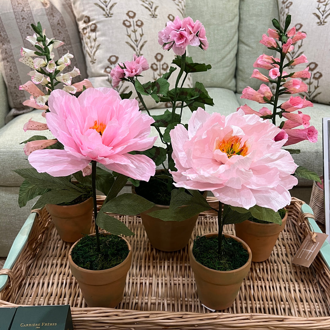 Handmade Paper Flowers in Clay Pot, Foxgloves in Pink