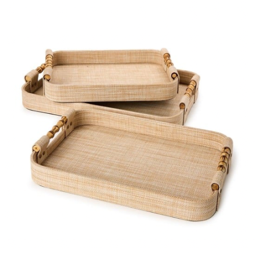 Natural Faux Seagrass Decorative Tray with Bamboo Handles, Assorted Sizes