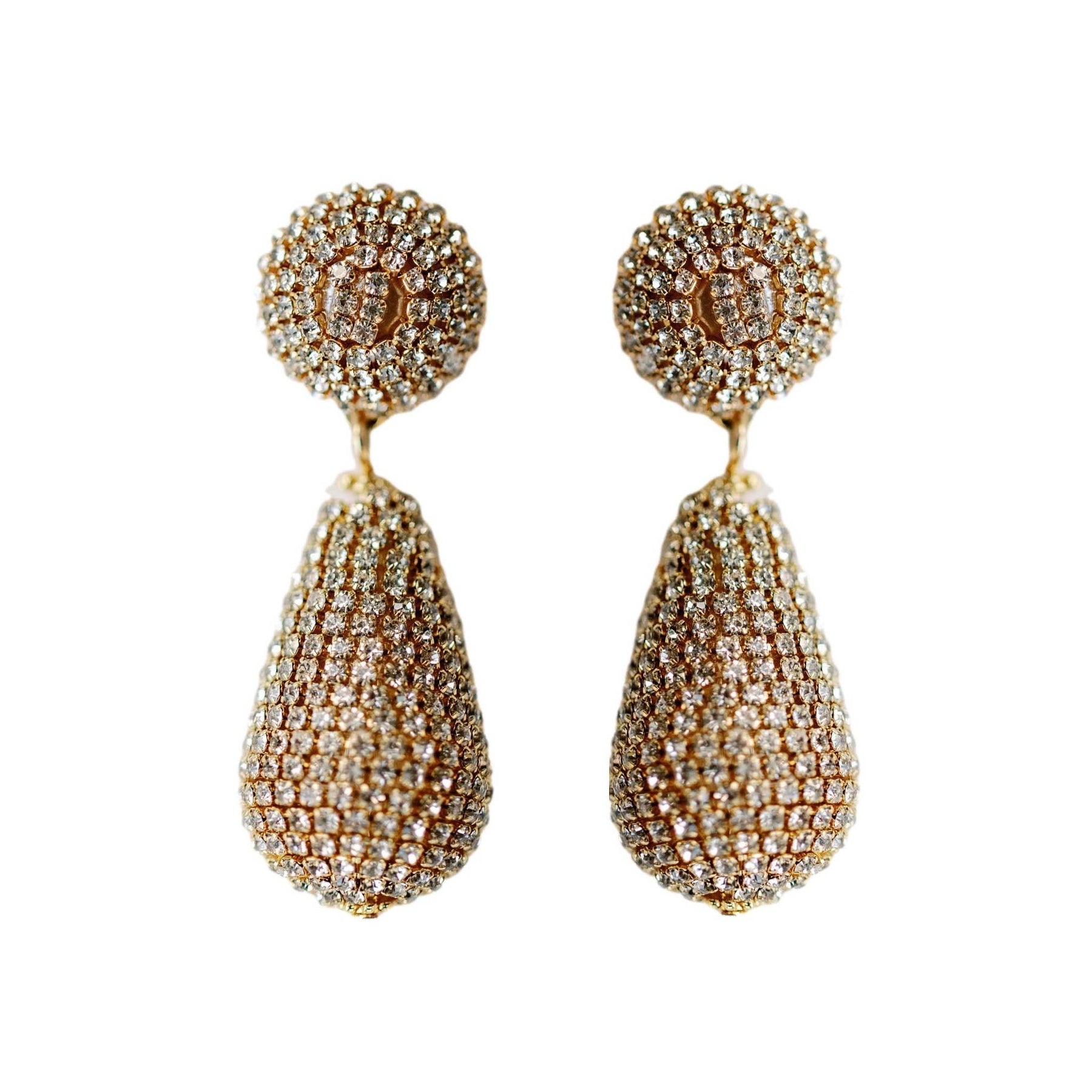 Elevate your holiday look with these stunning tear-drop shaped statement earrings wrapped in shimmering rhinestones. Perfectly sized at a little over 2”, these effortlessly add a touch of glamour and sophistication.