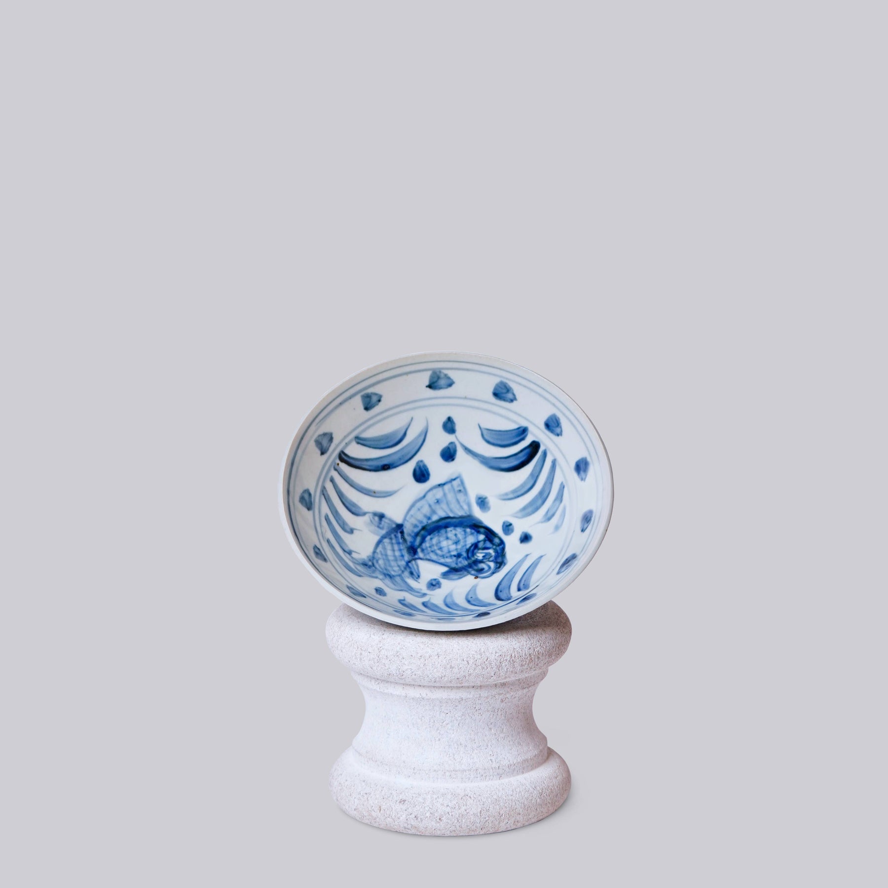 This piece is a small dish with a hand painted fish motif, 7" x 1 3/4"