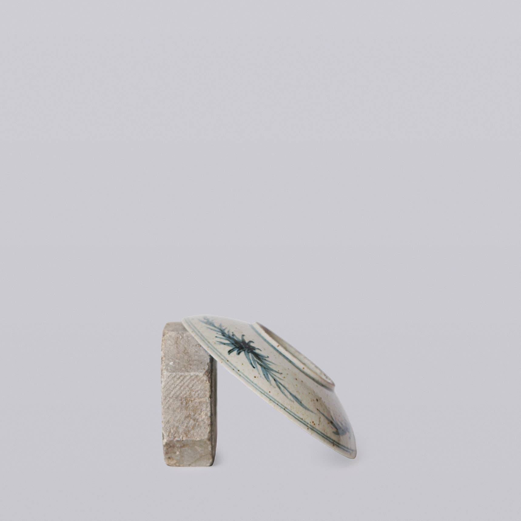 This piece is a small hand painted dish with an auspicious red-crowned crane motif, which symbolizes fidelity, 6 3/8" x 1 3/8"