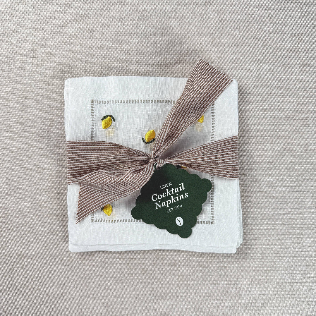 Lemon Embroidered Cocktail Napkin Set