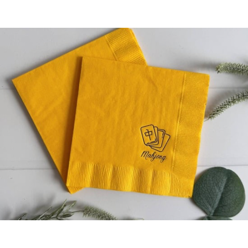 Mahjong Tile Cocktail Napkins in Yellow and Navy, Set of 16